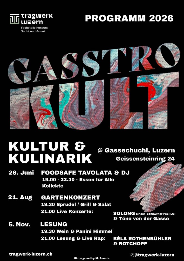 NEU: Nebst individuellen Catering-Anfragen bietet Gasstrokult eigene Events in der Gassechuchi – K+A an (siehe Flyer).