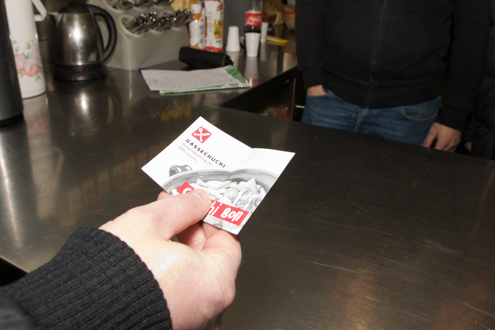 Die Gassechuchi – K+A unterstützt und begleitet sucht- und armutsbetroffene Menschen in Krisen und im Alltag mit verschiedenen Angeboten. Die Betroffenen erhalten für einen symbolischen Betrag täglich eine ausgewogene Mahlzeit, Beratung sowie die Möglichkeit, an Animationsangeboten teilzunehmen oder einfache Arbeiten zu verrichten. Mundwerk, das Cateringangebot der GasseChuchi, organisiert Apéros und Essen für Menschen, die sich für die Gassechuchi oder die Gassenarbeit als Ganzes interessieren, und eröffnet so zusätzliche Arbeitsmöglichkeiten für sucht- und armutsbetroffene Menschen.