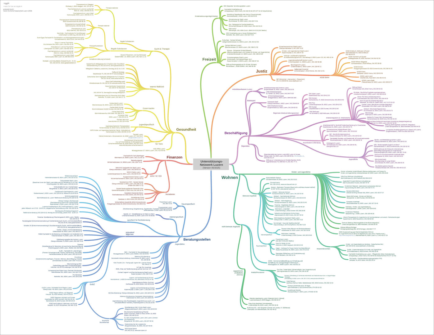 Immer wieder sprechen uns Fachpersonen – aus der Berufsrichtung Soziale Arbeit oder verwandte Professionen – auf die Netzwerkkarte an, welche in unseren Beratungsbüros hängt. Darauf sind über 180 Einrichtungen (Stand Oktober 2025) grafisch aufgeführt, welche auf Hilfsangebote für Menschen in prekären Lebenenslagen hinweist.