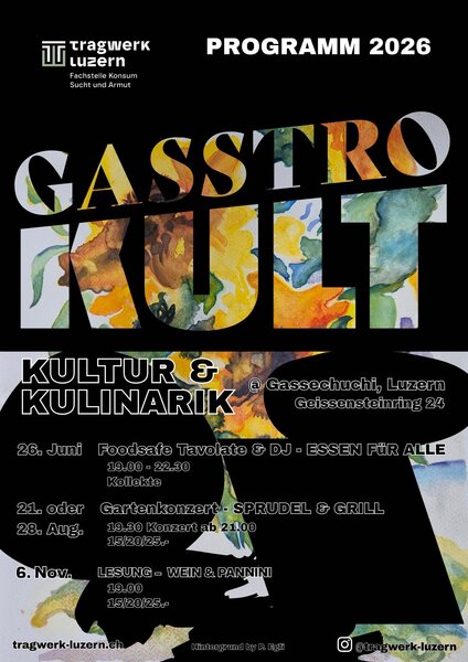 NEU: Nebst individuellen Catering-Anfragen bietet Gasstrokult eigene Events in der Gassechuchi – K+A an (siehe Flyer).